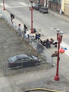 | Description: There may not be tents, but there is just about everything else. If RR can’t move this illegal group, the police sure can. Blocking a sidewalk is subject to citation or arrest. In addition there is blatant drug use near the skate park used by mostly teens and a school bus stop. Half of these degenerates are strung out on drugs much of the day acting erratically and dangerously. reported at 1:30 am, 19 March 2026 near on Northwest 4th Avenue near Northwest Flanders Street
