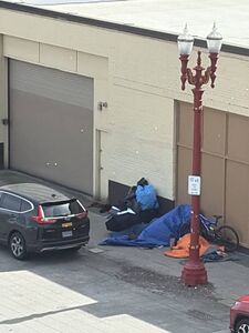 Loiterers completely blocking sidewalk on Flanders between 3rd and 4th reported at 8:02 pm, 22 March 2026 near on Northwest 4th Avenue near Northwest Flanders Street