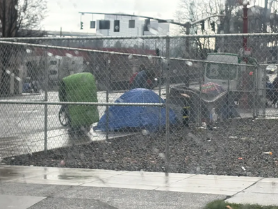 Camping on Northwest Glisan between third and fourth reported at 11:46 am, 7 February 2026 near Northwest 5th Avenue and Northwest Glisan Street