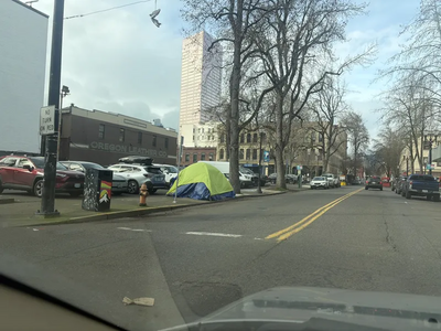 Camp reported at 10:13 am, 3 March 2026 near Northwest 1st Avenue and Northwest Davis Street