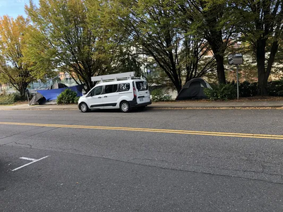 Camp reported at 9:49 am, 23 October 2025 near Northwest 15th Avenue and Northwest Flanders Street