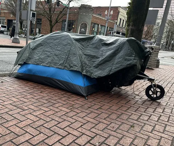 Camp reported at 11:26 am, 9 January 2026 near Northwest 6th Avenue and Northwest Flanders Street
