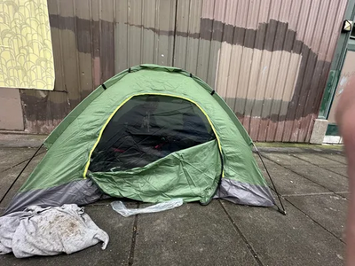 Camp reported at 10:44 am, 30 January 2026 near Northwest Flanders Street and Northwest 3rd Avenue