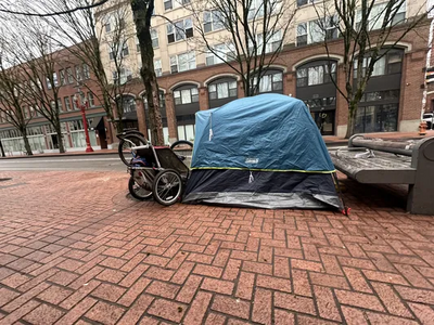 Camp reported at 10:40 am, 30 January 2026 near Northwest 5th Avenue and Northwest Everett Street