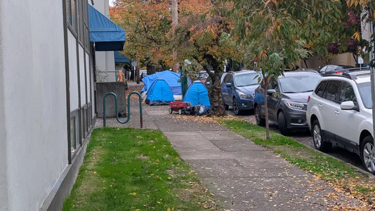 camp blocking sidewalk reported at 7:43 am, 3 November 2025 near Northwest Irving Street and Northwest 18th Avenue
