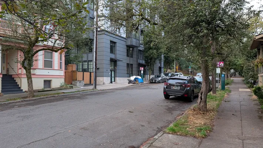 Camp on sidewalk reported at 7:48 am, 3 October 2025 near Northwest Hoyt Street and Northwest 18th Avenue