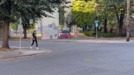 Camping by the sidewalk reported at 8:10 am, 26 September 2025 near Northwest Raleigh Street and Northwest 17th Avenue