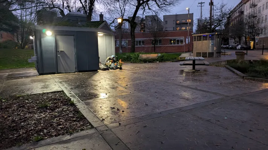 Camping in Park outside school reported at 7:27 am, 17 December 2025 near 45.52714722222222, -122.6925638888889