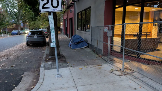 Camping on sidewalk reported at 7:50 am, 24 October 2025 near Northwest Irving Street and Northwest 21st Avenue