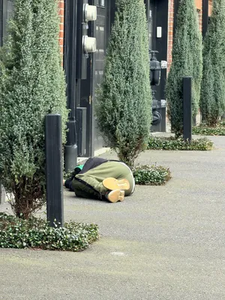 | Description: Drugs and camping - This person is laying in the alley between NW Johnson and Nw Irving between nw 11th and nw 12th