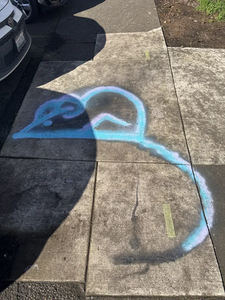 Mouse graffiti on sidewalk. This image has been seen in multiple locations around the neighborhood reported at 9:49 am, 26 February 2026 near Northwest 1st Avenue and Northwest Davis Street