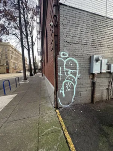 Graffiti reported at 1:42 pm, 3 February 2026 near Northwest 1st Avenue and Northwest Couch Street