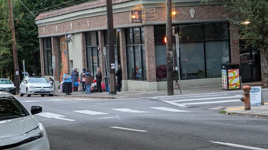 Line outside Rose Haven reported at 7:19 am, 22 September 2025 near Northwest 18th Avenue and Northwest Glisan Street