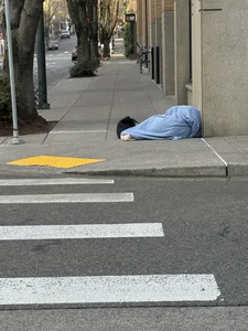 Person camping on corner of NW10th & Flanders - Sent from my iPhone reported at 9:30 am, 25 January 2026 near Northwest 10th Avenue and Northwest Flanders Street