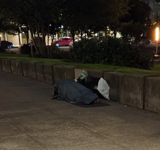 Person sleeping - Tanner Springs Park - Sent from my T-Mobile 5G Device reported at 8:18 am, 8 October 2025 near Northwest Marshall Street and Northwest 11th Avenue
