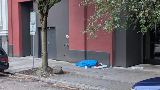 Sleeping on the street reported at 7:26 am, 22 September 2025 near Northwest 21st Avenue and Northwest Irving Street