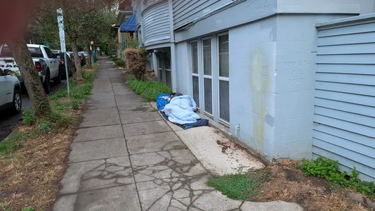 Sleeping on the street reported at 7:31 am, 2 October 2025 near Northwest Hoyt Street and Northwest 18th Avenue