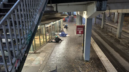 Sleeping on train station reported at 7:48 am, 29 October 2025 near Southwest 1st Avenue and Northwest 1st Avenue