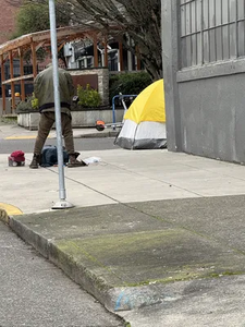 Tent and drug paraphernalia on corner of NW 17th & Flanders - Sent from my iPhone reported at 9:51 am, 21 December 2025 near Northwest Flanders Street and Northwest 17th Avenue