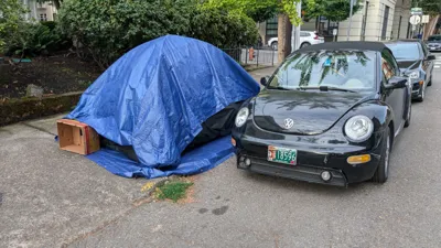 Tented camp blocking sidewalk 20250826 223158