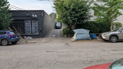 Tented camp blocking sidewalk reported at 7:54 am, 26 August 2025 near