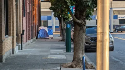Tents blocking sidewalk reported at 7:45 am, 17 September 2025 near