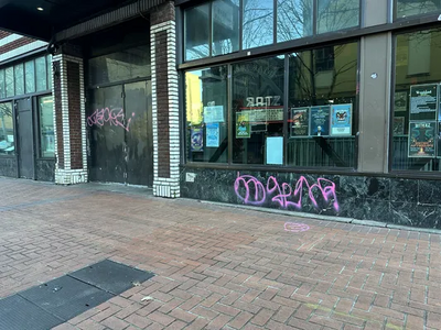 Graffiti reported at 11:23 am, 16 January 2026 near Northwest 6th Avenue and West Burnside Street