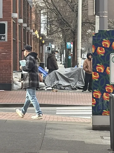 Camp reported at 1:44 pm, 27 January 2026 near Northwest 5th Avenue and Northwest Flanders Street