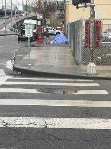 Camp reported at 1:36 pm, 28 January 2026 near Northwest 4th Avenue and Northwest Glisan Street